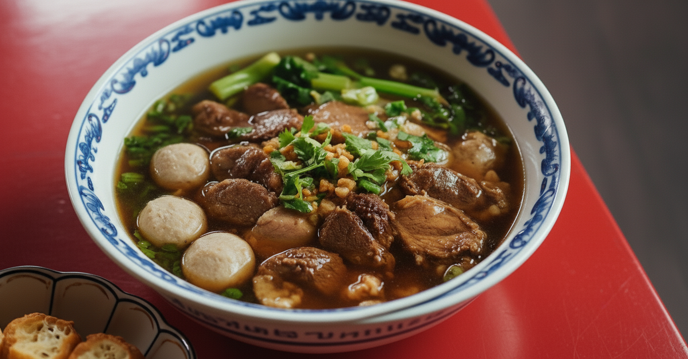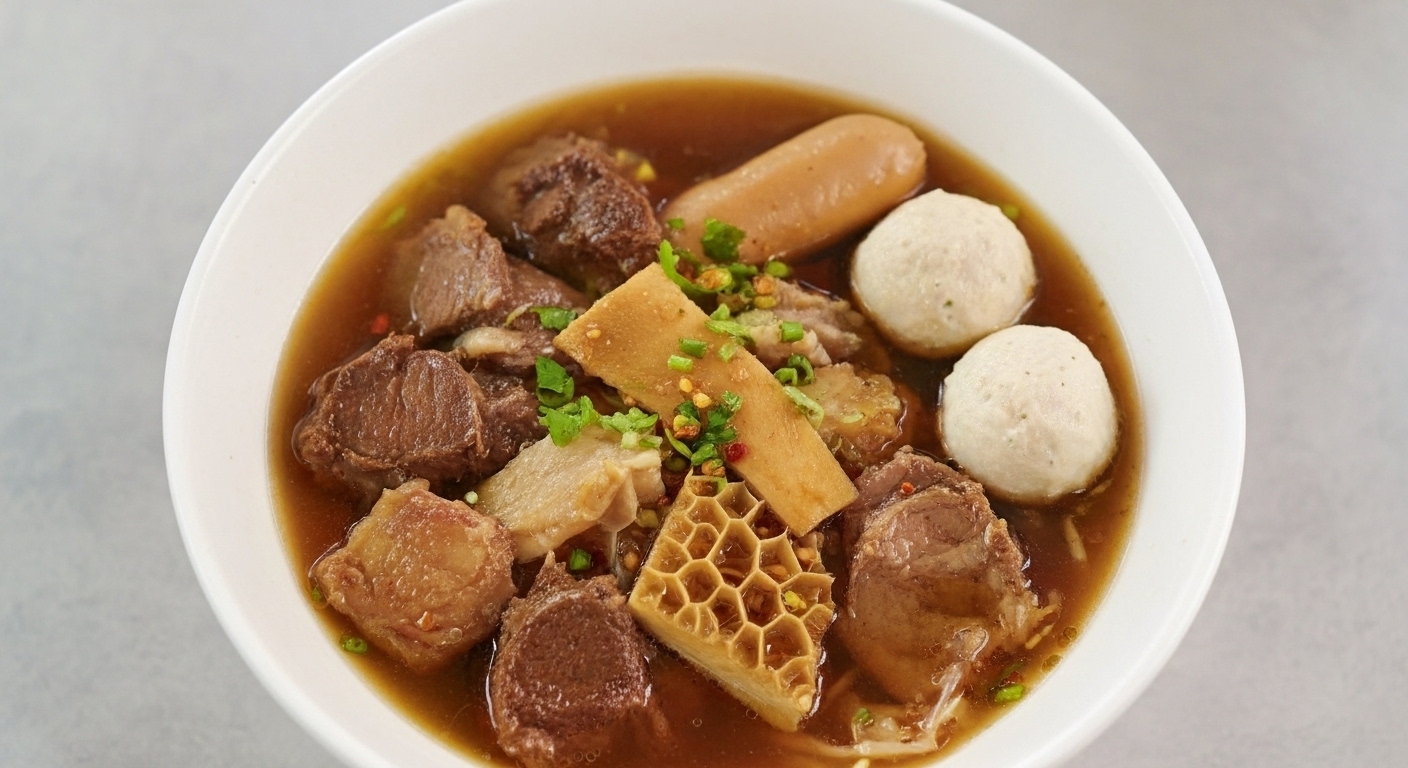 Stewed Beef Soup: A hearty dish featuring various beef parts like tripe and tendon.