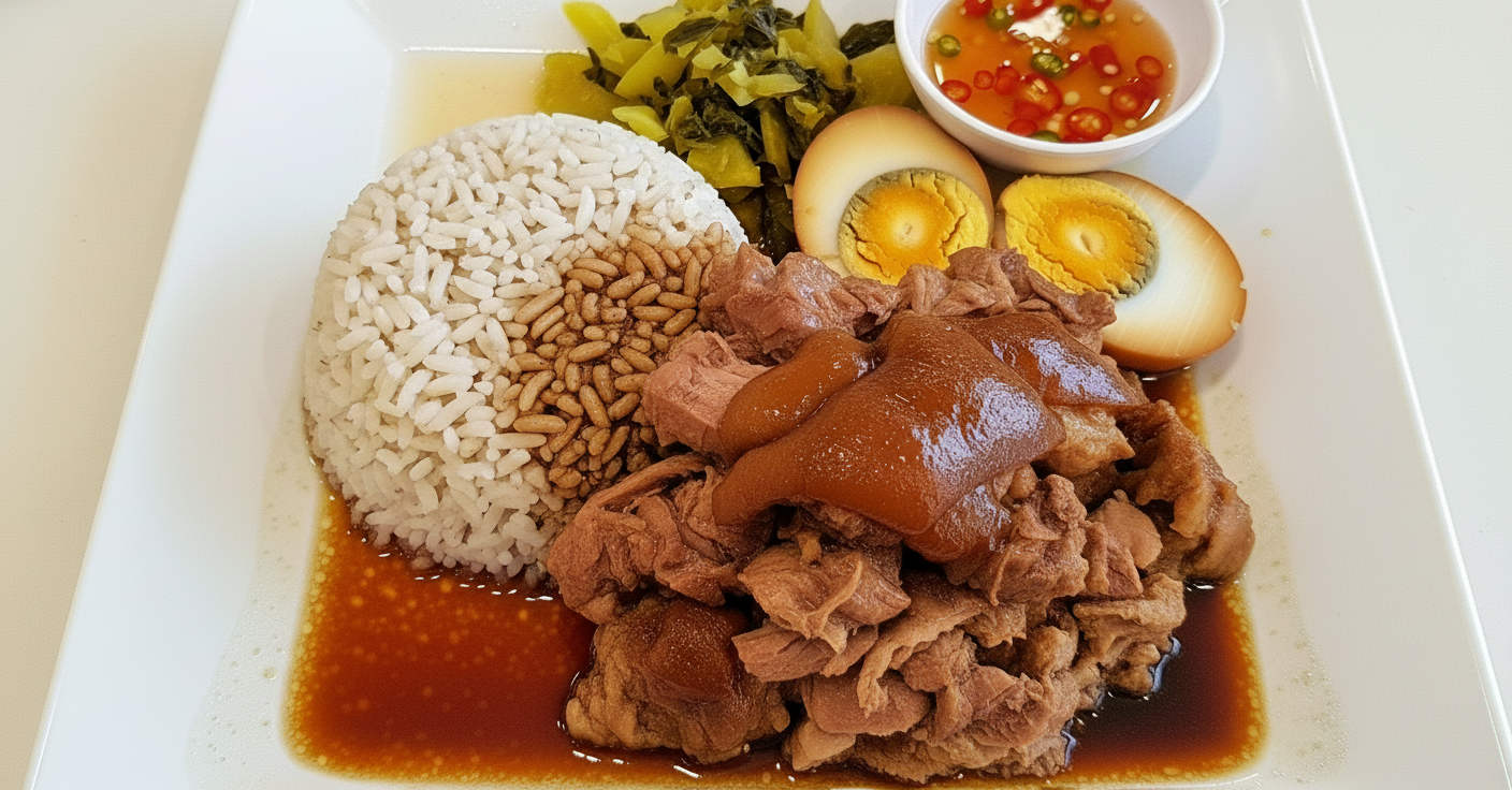Specialty: Braised pork leg with rice, served with rich gravy.