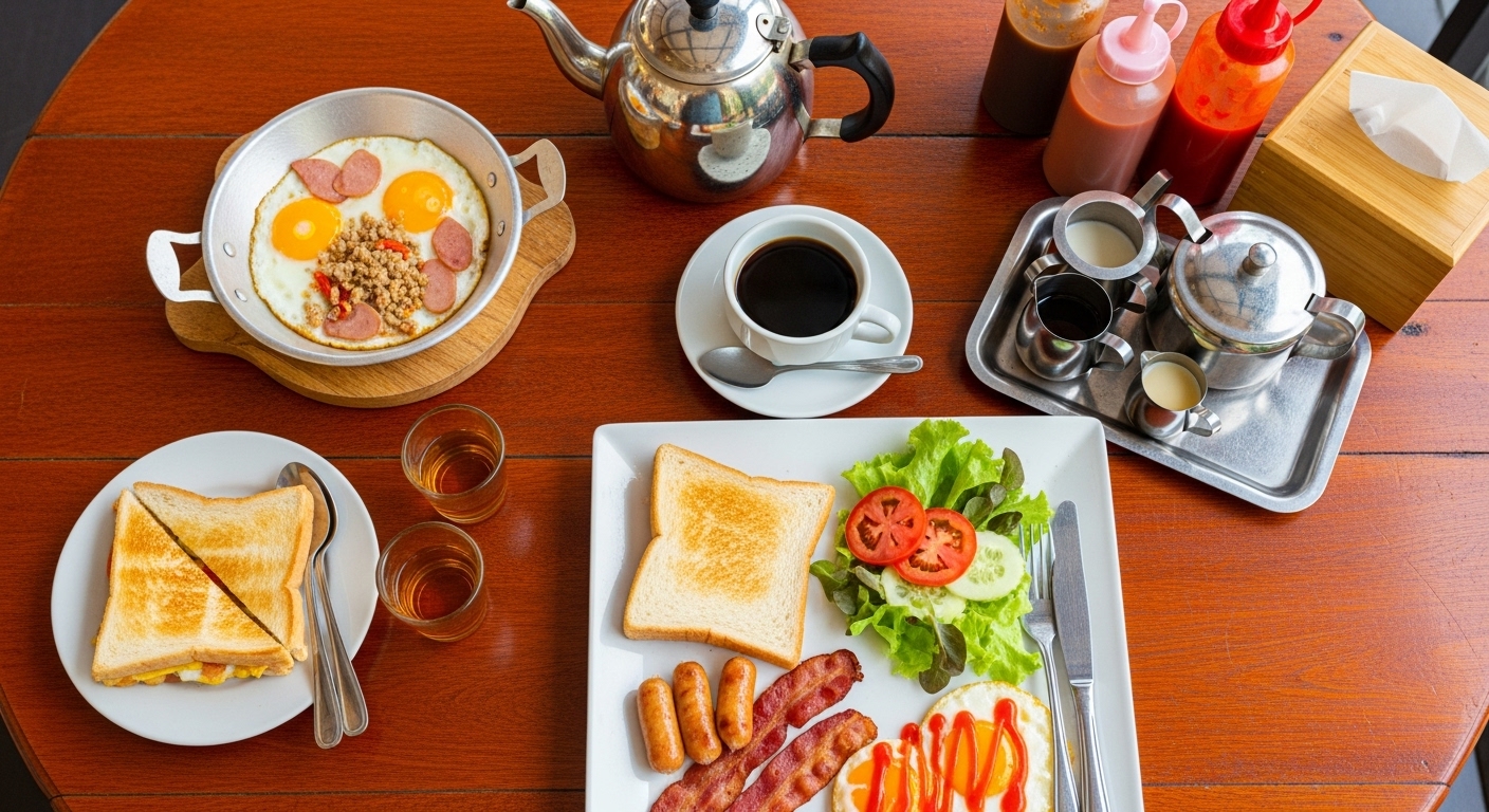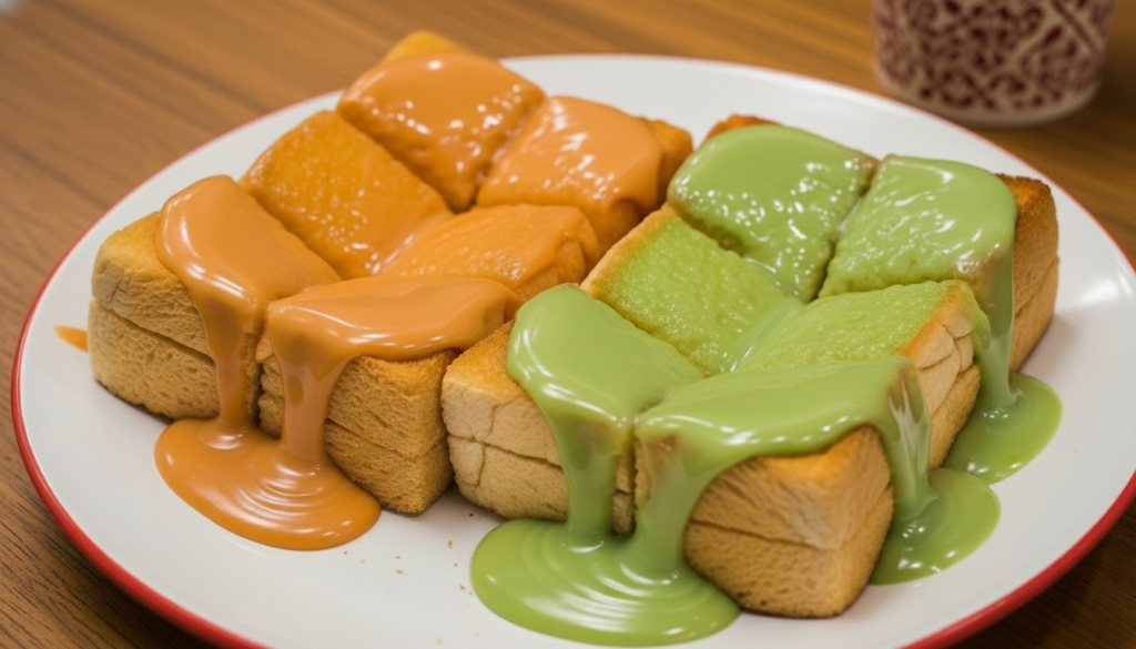 Thai breakfasts often include sweet toast and Thai milk tea, a must-try local experience