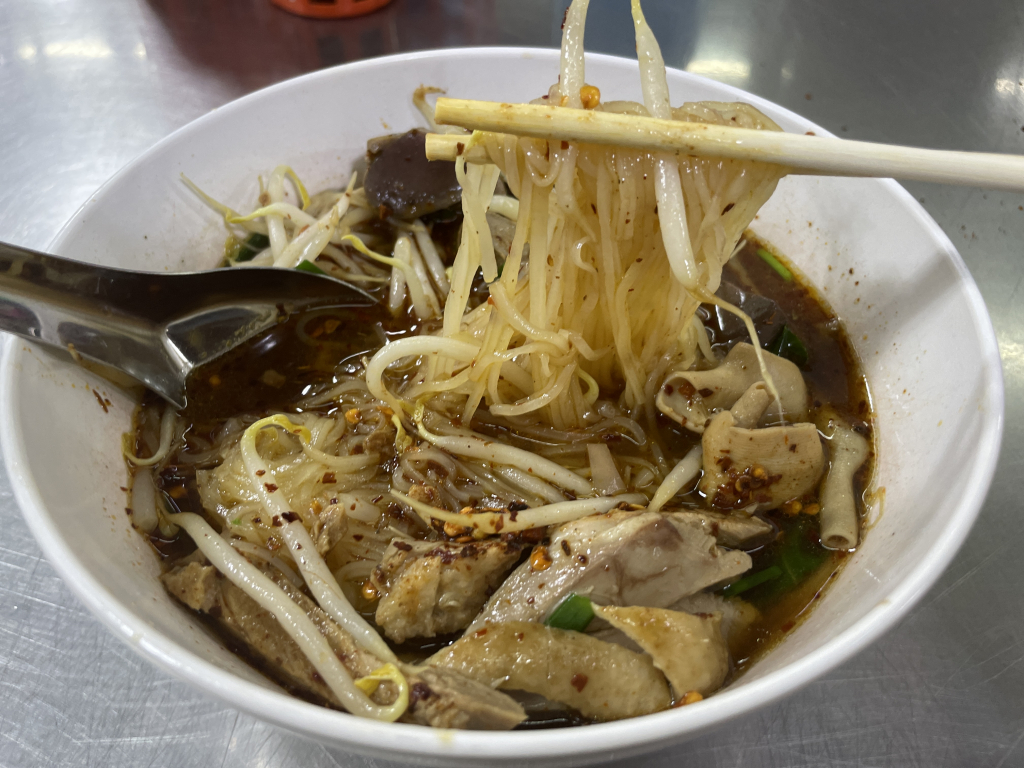 When it comes to Thai noodle soups, the first dishes that probably come to mind are Thai Boat Noodles or Thai Fish Ball Noodle Soup. However, this time we’re exploring a dish that isn’t commonly found on the tourist menu. Unlike Thai Boat Noodles, its broth is mainly simmered for a long time with Chinese herbs, star anise, licorice, cinnamon, soy sauce, rock sugar, and duck, creating a style similar to “braised-flavor soup.” It doesn’t use blood to thicken the broth, so the soup is clear yet dark in color, with a naturally sweet and mellow taste.