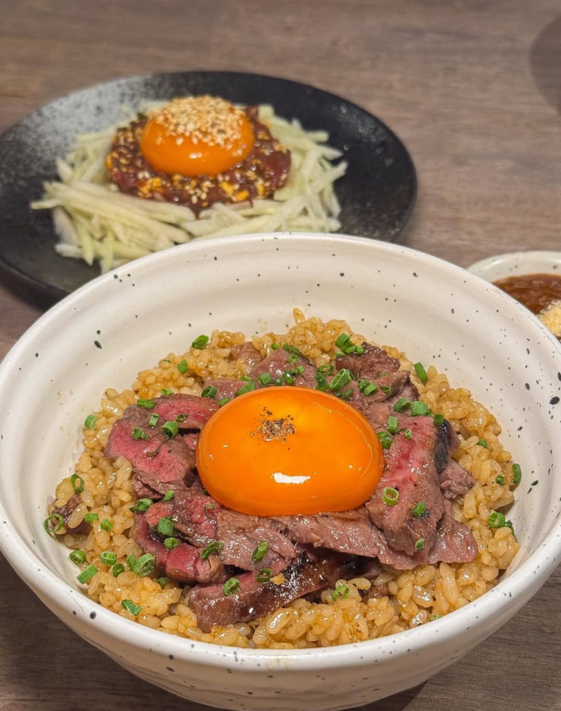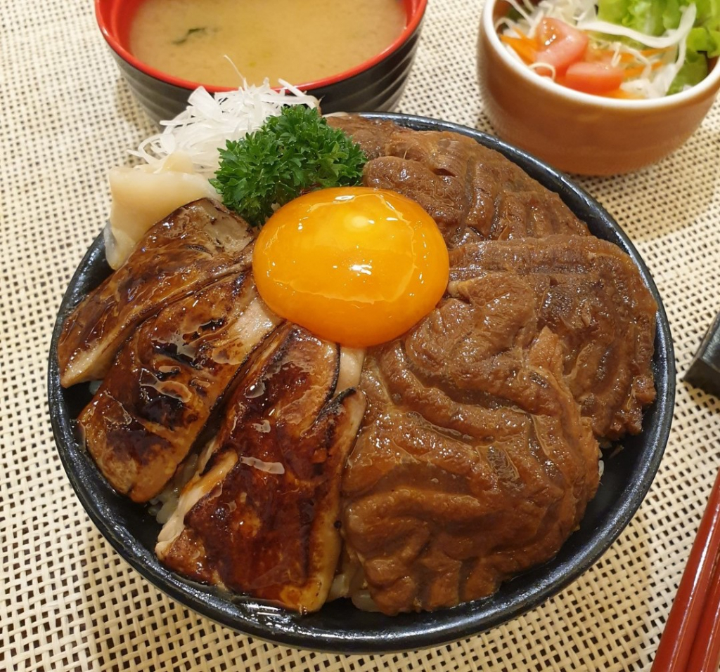 丼飯鋪滿肉類或海鮮與特製醬汁,