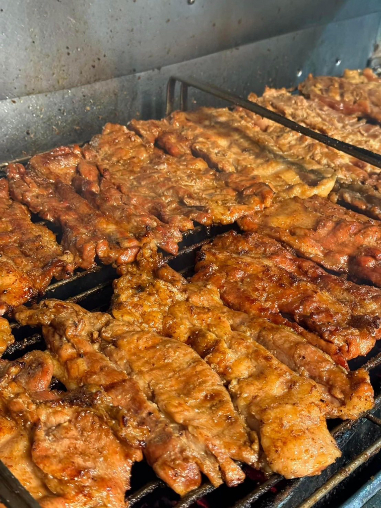 特色: 豬肉先以蜂蜜醃製,再炭烤烘烤,外皮微焦、內裡多汁、甜鹹平衡。比起一般的鹹烤肉,這種蜂蜜烤讓豬肉更香甜、口感更柔軟。非常適合想吃肉又不想太油膩的人。