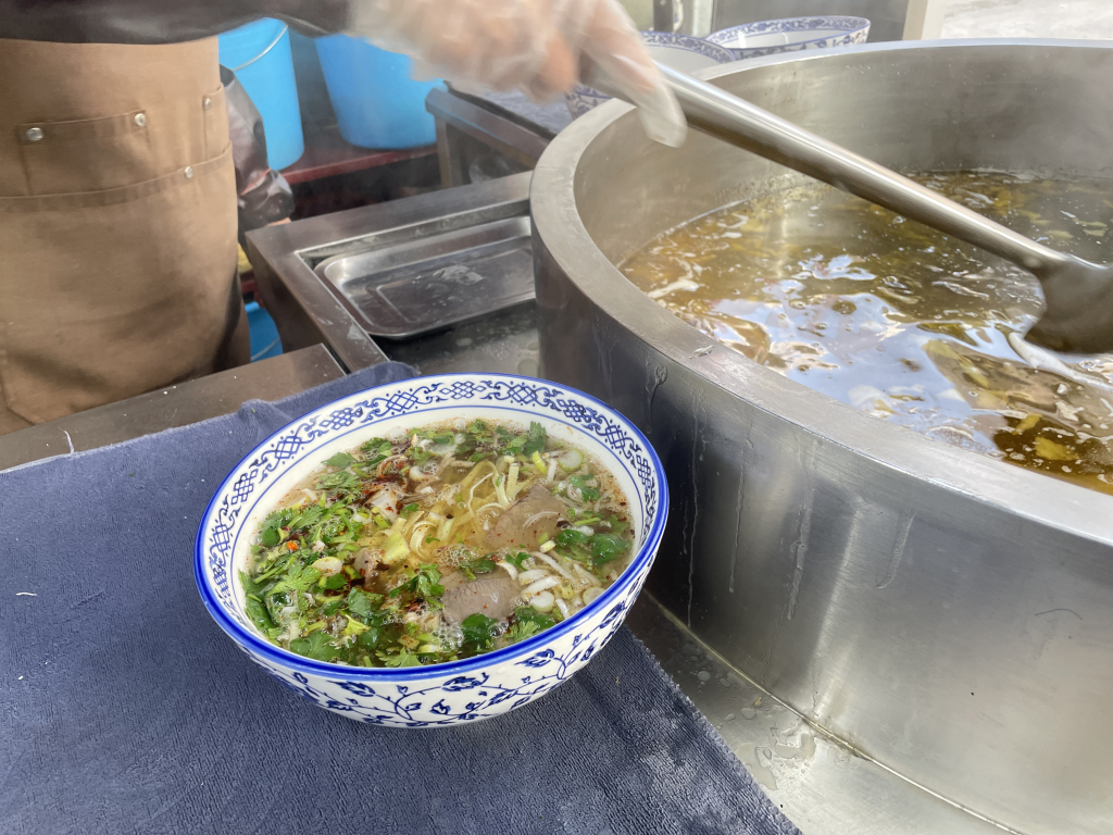 在西安的街頭,有一些不起眼的小店,卻能用極低的價格,帶給你最溫暖的味覺體驗。這次,我在老城區的一條小巷裡,發現了一家地道早餐店,點了一碗 牛肉湯,還加了一份 蔥花餅,總共不到10元人民幣,真是經濟又滿足。